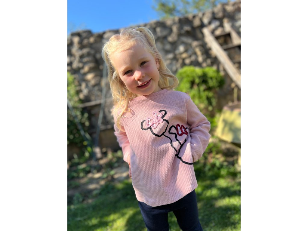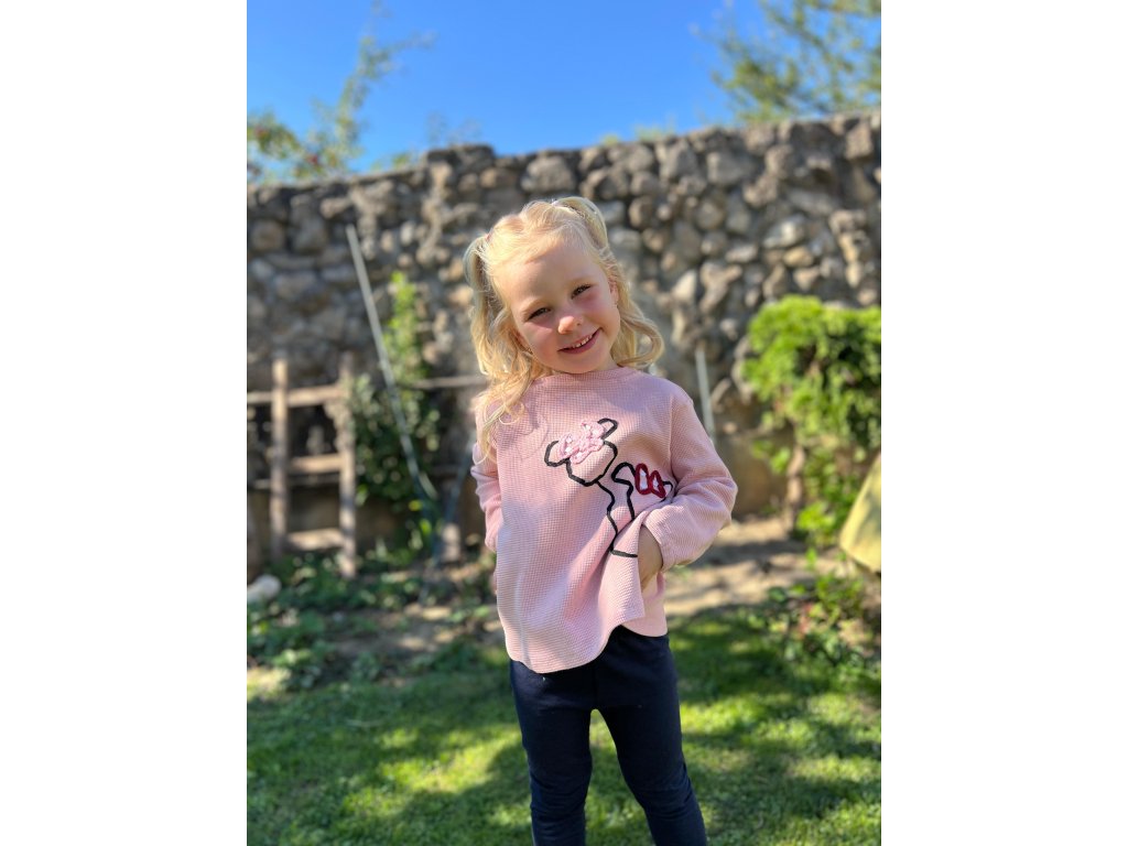 Mikina z jemného waflového úpletu s obrázkom Minnie Mouse vyrobený zo ŠNÚROK . Materiál je veľmi príjemný na nosenie, zatiaľ čo obrázok Minnie Mouse dodáva mikine hravý a veselý nádych. Ideálne na každodenné nosenie.