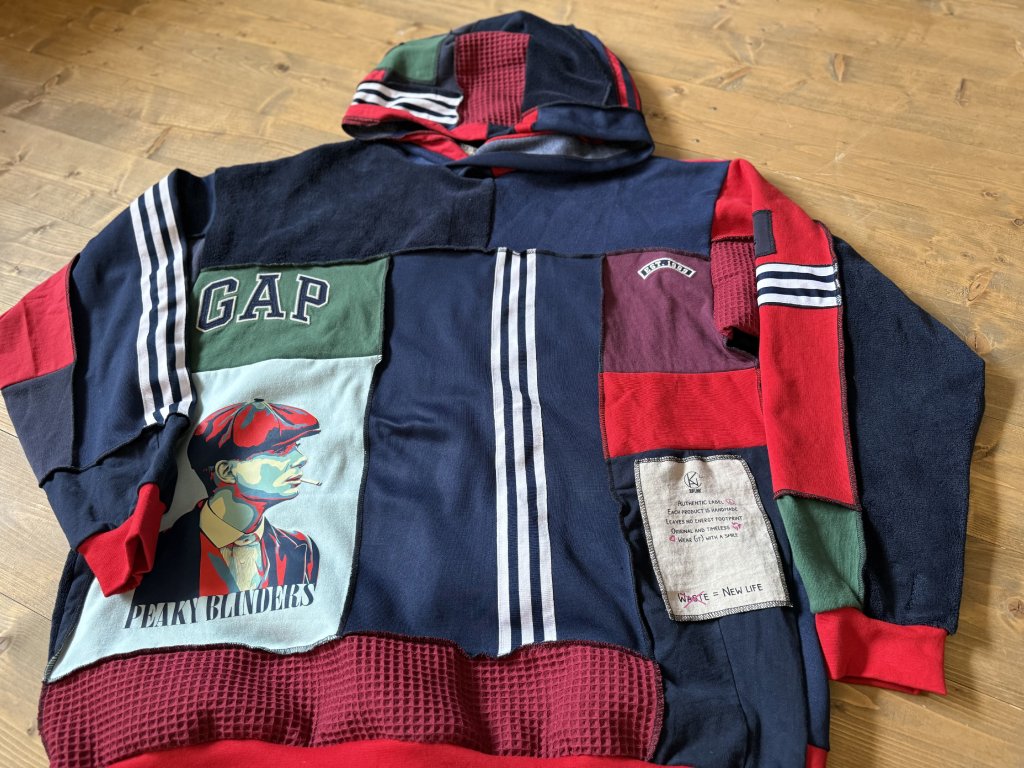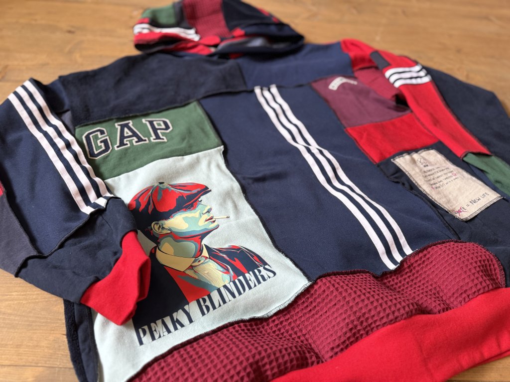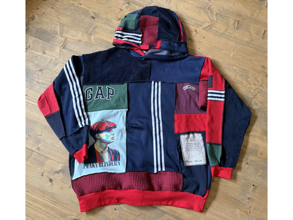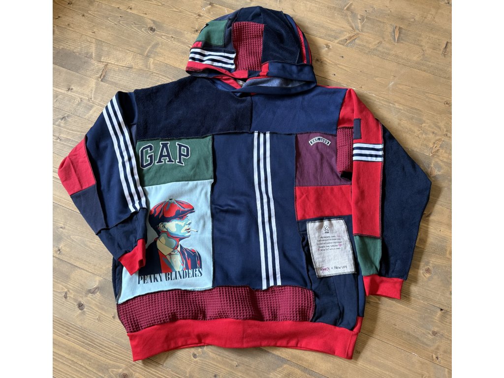 Inšpirovaná ikonickou drzosťou a štýlom legendárnych Peaky Blinders, mikina SHELBY spája ručne šitý patchwork z recyklovaných látok s výraznou nášivkou, ktorá hovorí za všetko.