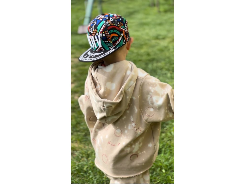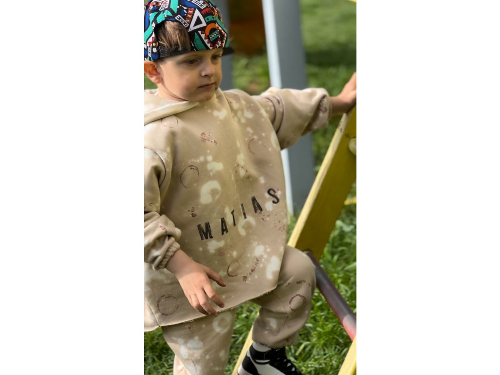 Vytvorte si svoju jedinečnú mikinu s MENOM! Vzor látky je vytvorený vlastnou technikou pomocou SAVA a PEČIATOK.