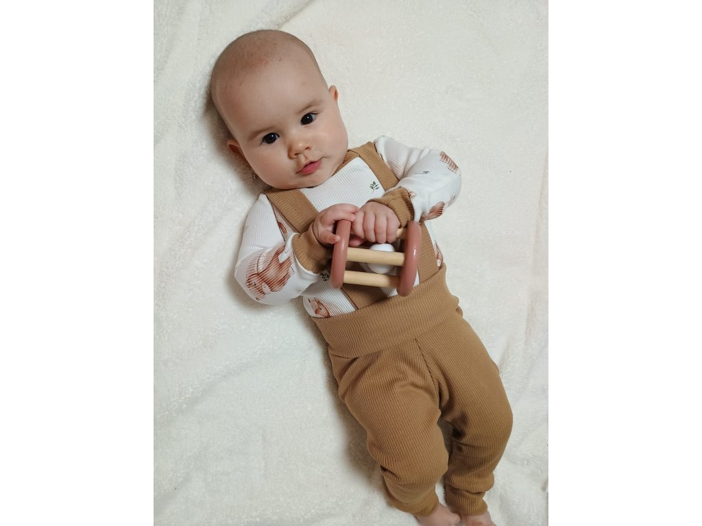 Trakáče sú vyrobené z rebrovaného elastického úpletu, vďaka predĺženým patentom sú rastúce, pohodlné a skvelo sa hodia aj na látkové plienky, čiže netlačia a prispôsobia sa každej malej riťke.