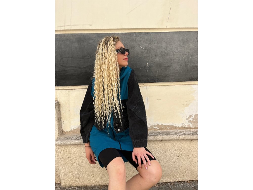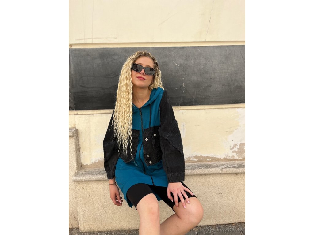 Dámsku predĺženú mikinu na zips – s kombináciou rifľovej bundy. Vznikol tak originálny, pohodlný a štýlový kúsok, ktorý nikto iný nemá.