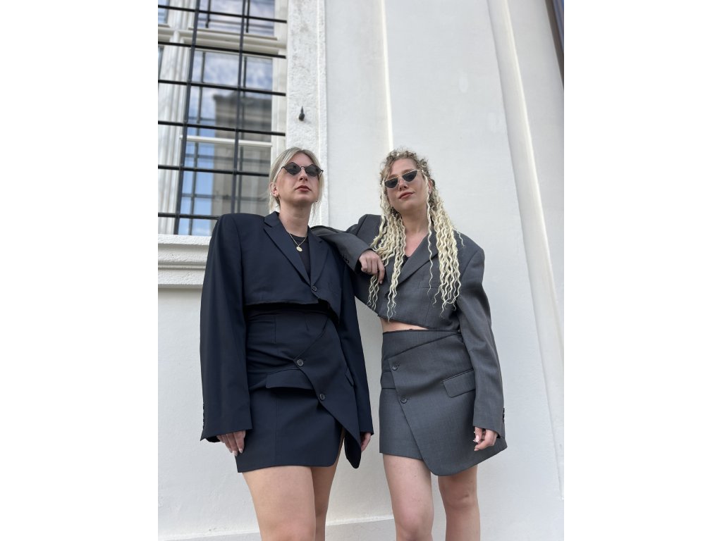 Z pánskeho saka vznikol nový príbeh – premenený na originálny top a sukňu. Každý detail nesie stopu ručnej práce, kreativity a vedomej premeny.