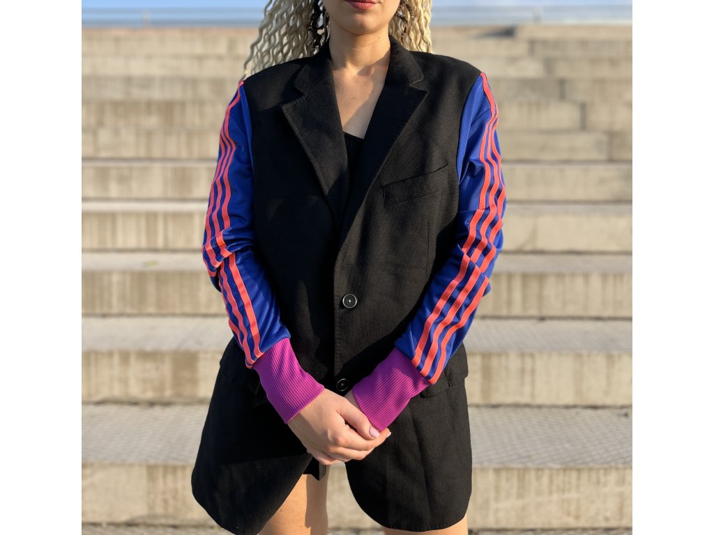 Toto pánske sako vzniklo kreatívnou prerábkou viacerých kúskov oblečenia. Rukávy sú použité z mikiny v krikľavej farbe, čo dodáva klasickému strihu moderný a hravý charakter. Ideálne pre odvážnych, ktorí sa neboja výrazných farieb a originálnych kúskov.