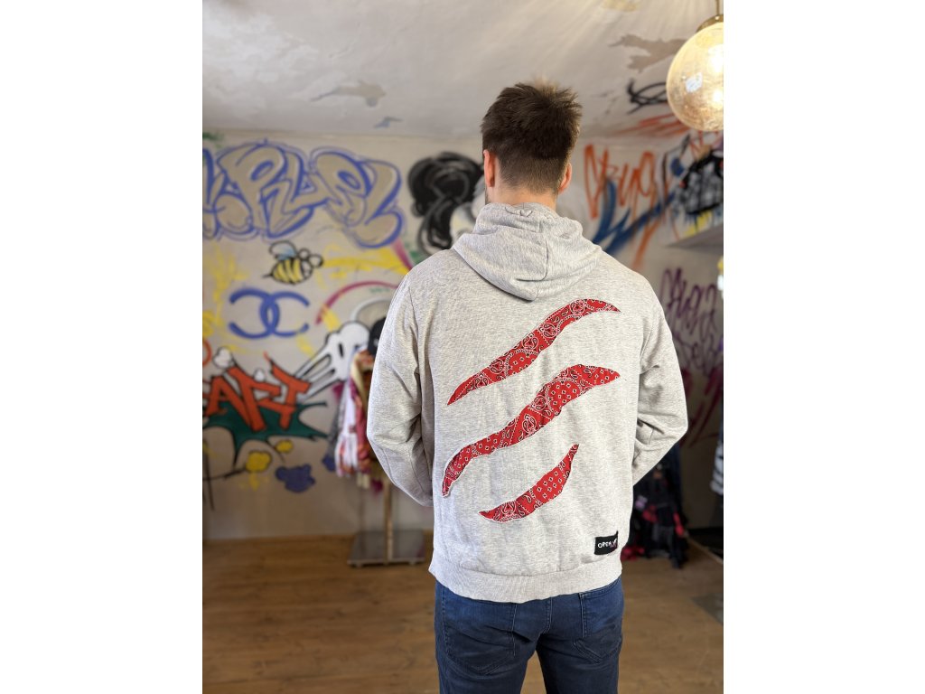 Každá škrabaná stopa má svoj príbeh. Na predku aj zadku som použila šatku, ktorá mikine dodala nový, jedinečný vzhľad.