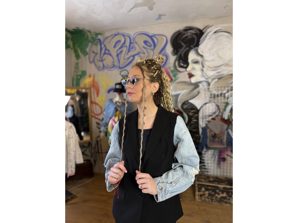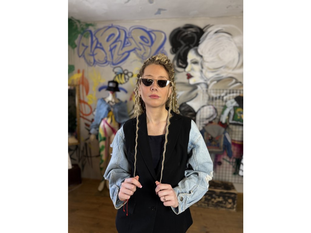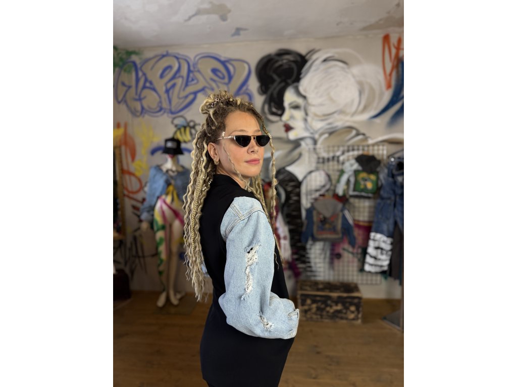 Toto pánske sako vzniklo kreatívnou upcykláciou viacerých kúskov oblečenia. Rukávy sú použité z rifľovej bundy, čo dodáva klasickému strihu saka originálny a nadčasový charakter. Kombinácia materiálov vytvára jedinečný kontrast a hravý detail.