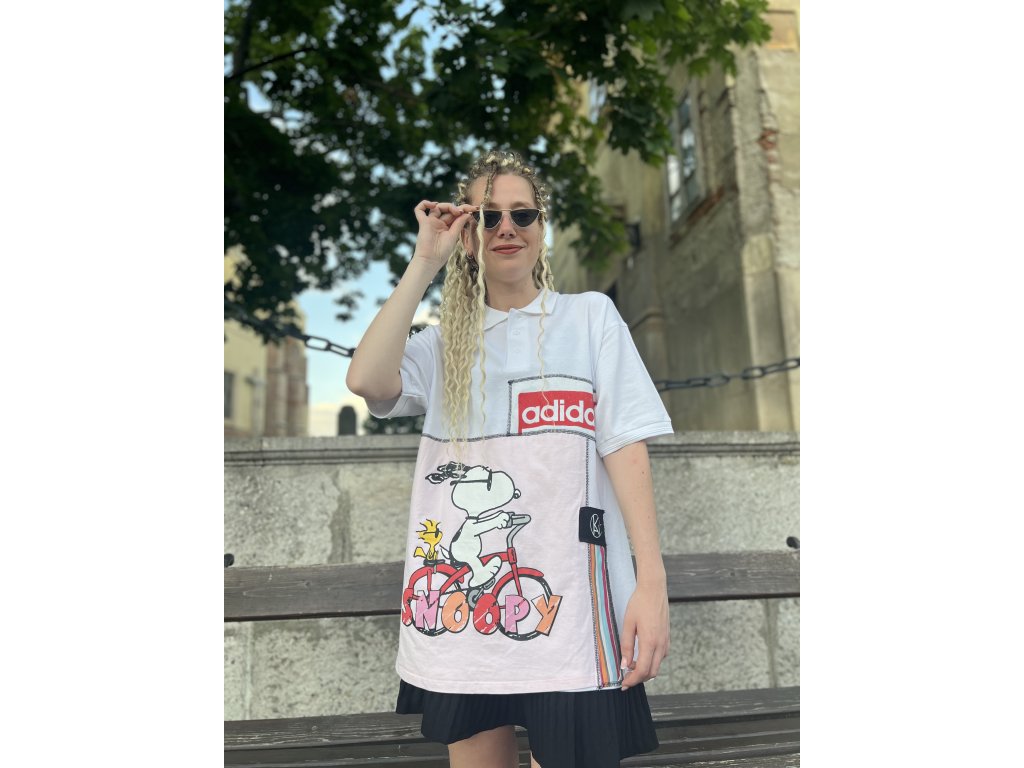 Upcycled t-shirt with an urban vibe. Every piece is one of a kind.