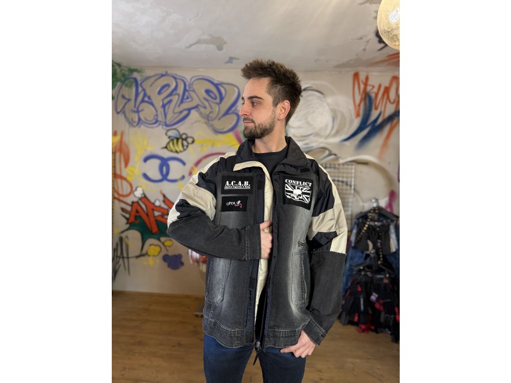 Spojenie športového šušťáku a upcyklovanej rifľoviny vytvára funkčný, mestský kúsok s jasným postojom k udržateľnosti. Každá bunda je jedinečná a nesie vlastný príbeh.