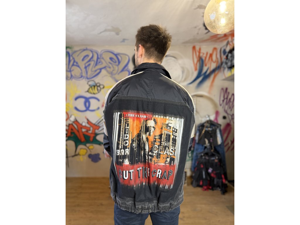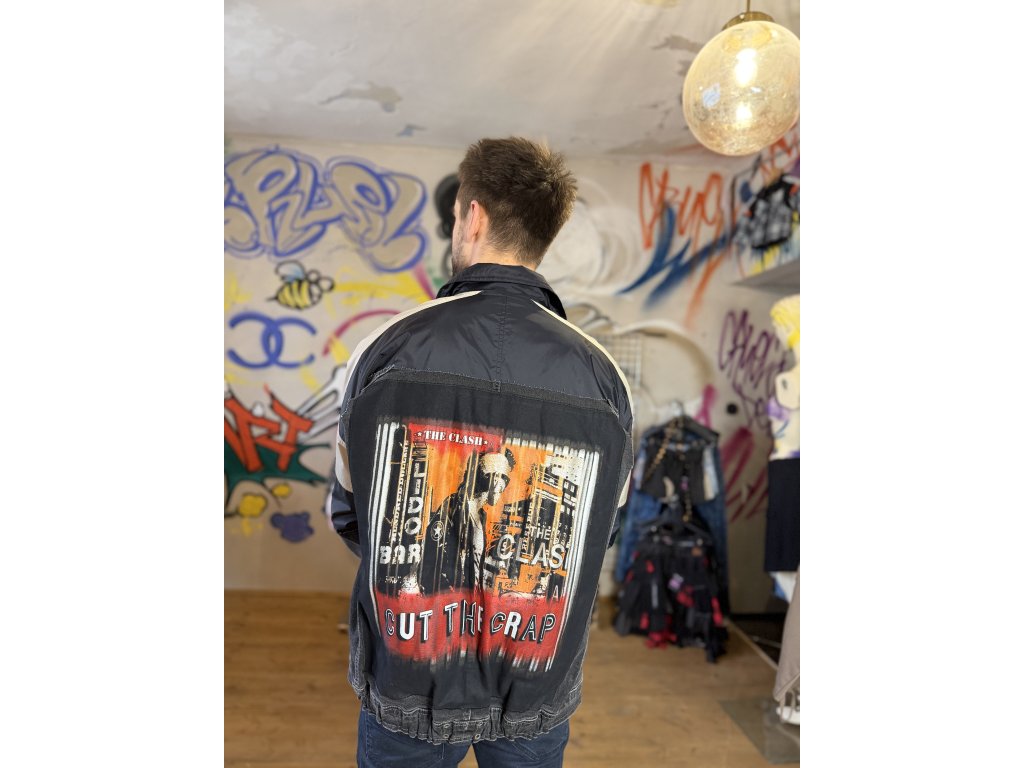 Na zadnej strane dominuje veľká nažehľovačka, ktorá dáva kúsku výrazný vizuálny podpis. Štvrť rukáva z rifľoviny pridáva kontrast materiálov a robí z bundy originál, ktorý si všimneš na prvý pohľad.